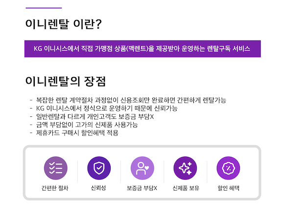 누구든 간편하게! 보증금 없이! 이니렌탈